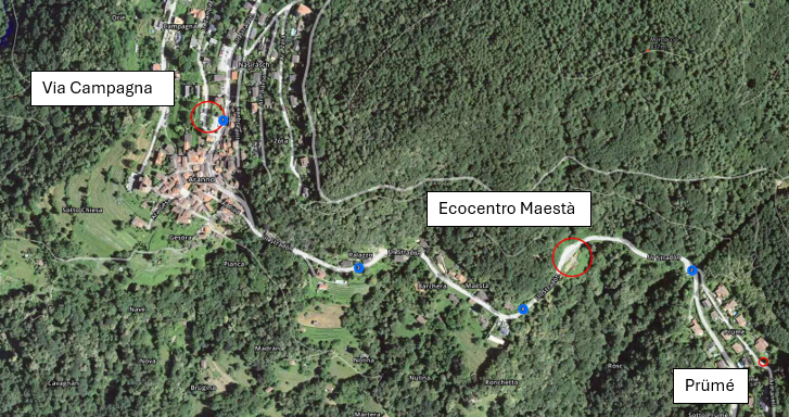 Tipologia di rifiuti ammessi | | Vetro | Oli usati | ALU / latta | Vestiario | Umido | Carta | PET | RSU | Vegetali | Plastiche | Polistirolo | Cellophane | Capsule caffe | | Via Campagna | • | | • | | • | | • | • | | • | | • | | | Prümé (piazza di giro) | | | | | | | | • | | | | | | | Ecocentro Maestà | • | • | • | • | • | • | • | | • | • | • | • | • |